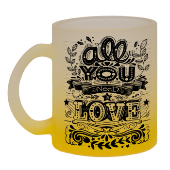 All you need is love, Κούπα γυάλινη δίχρωμη με βάση το κίτρινο ματ, 330ml
