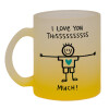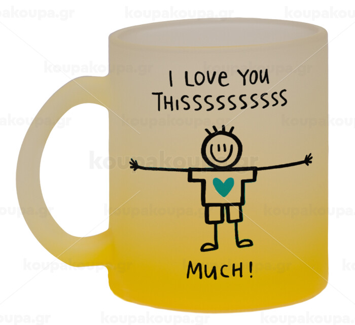 I Love you thissss much (boy)..., Κούπα γυάλινη δίχρωμη με βάση το κίτρινο ματ, 330ml