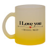 I Love you thisssss much, Κούπα γυάλινη δίχρωμη με βάση το κίτρινο ματ, 330ml