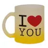 I Love you classic, Κούπα γυάλινη δίχρωμη με βάση το κίτρινο ματ, 330ml