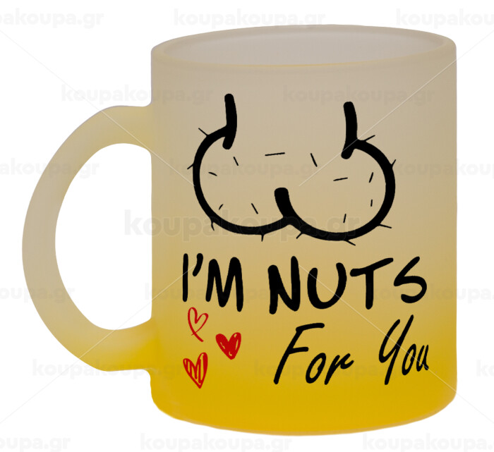 I'm Nuts for you, Κούπα γυάλινη δίχρωμη με βάση το κίτρινο ματ, 330ml