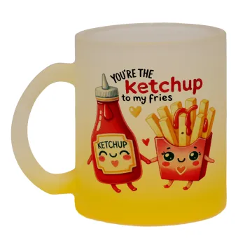 Ketchup To My Fries, Κούπα γυάλινη δίχρωμη με βάση το κίτρινο ματ, 330ml
