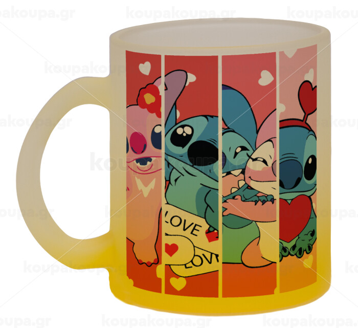 Lilo & Stitch Love, Κούπα γυάλινη δίχρωμη με βάση το κίτρινο ματ, 330ml