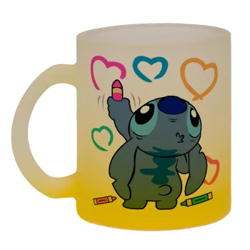Lilo & Stitch painting, Κούπα γυάλινη δίχρωμη με βάση το κίτρινο ματ, 330ml