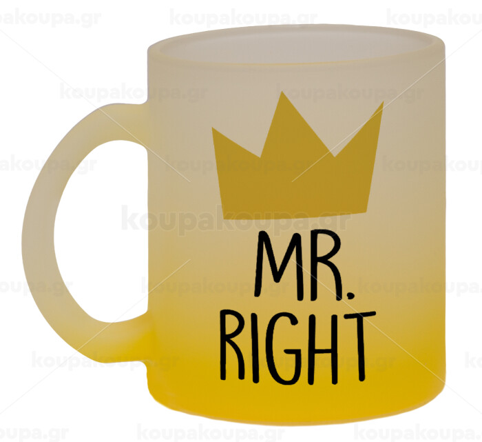 Mr right, Κούπα γυάλινη δίχρωμη με βάση το κίτρινο ματ, 330ml