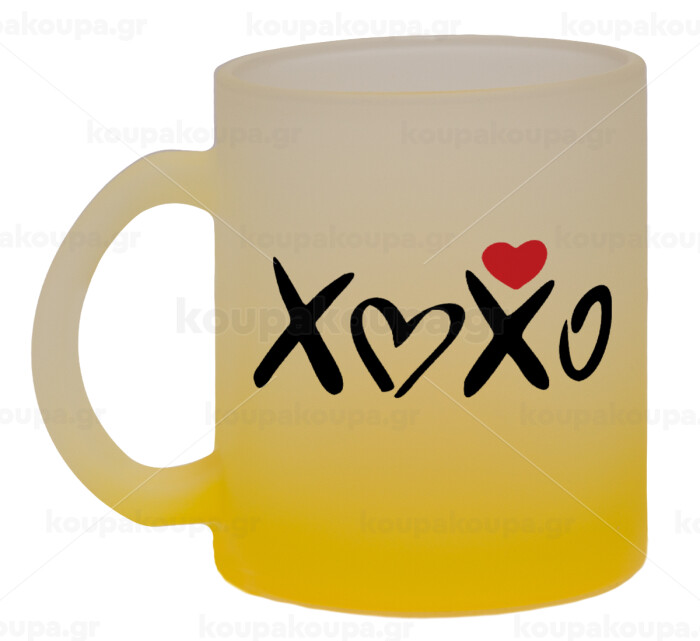 xoxo, Κούπα γυάλινη δίχρωμη με βάση το κίτρινο ματ, 330ml