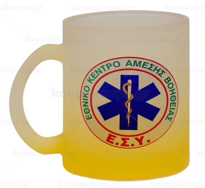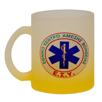 ΕΚΑΒ, Κούπα γυάλινη δίχρωμη με βάση το κίτρινο ματ, 330ml