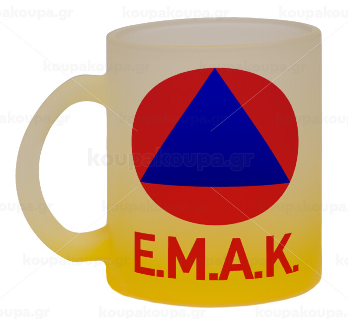 Πυροσβεστικό σώμα Ελλάδος σκούρο, Κούπα γυάλινη δίχρωμη με βάση το κίτρινο ματ, 330ml