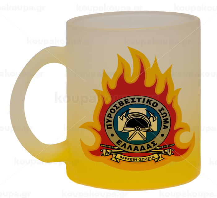 Πυροσβεστικό σώμα Ελλάδος, Κούπα γυάλινη δίχρωμη με βάση το κίτρινο ματ, 330ml