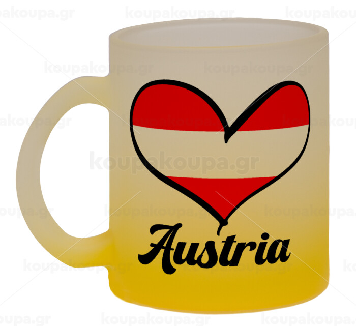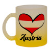 Austria flag, Κούπα γυάλινη δίχρωμη με βάση το κίτρινο ματ, 330ml