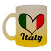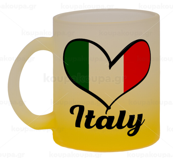 Italy flag, Κούπα γυάλινη δίχρωμη με βάση το κίτρινο ματ, 330ml