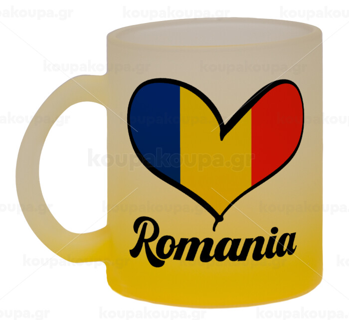 Romania flag, Κούπα γυάλινη δίχρωμη με βάση το κίτρινο ματ, 330ml
