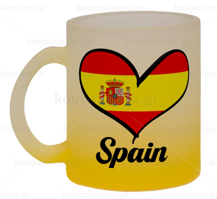 Spain flag, Κούπα γυάλινη δίχρωμη με βάση το κίτρινο ματ, 330ml