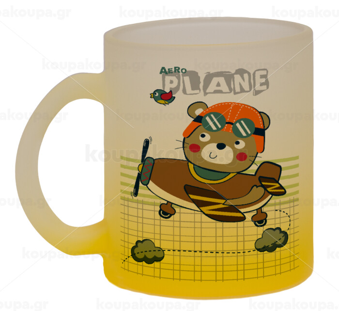 Kids Plane, Κούπα γυάλινη δίχρωμη με βάση το κίτρινο ματ, 330ml