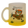 Toys Boy, Κούπα γυάλινη δίχρωμη με βάση το κίτρινο ματ, 330ml