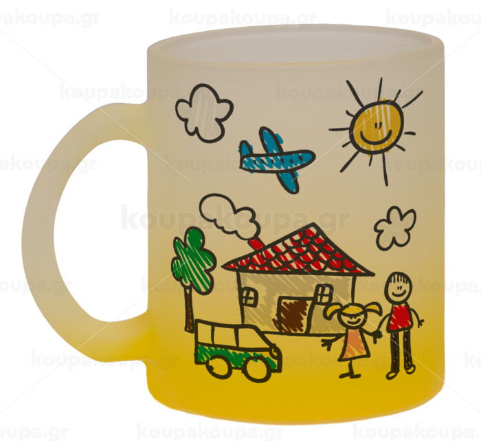 Children's drawing, Κούπα γυάλινη δίχρωμη με βάση το κίτρινο ματ, 330ml