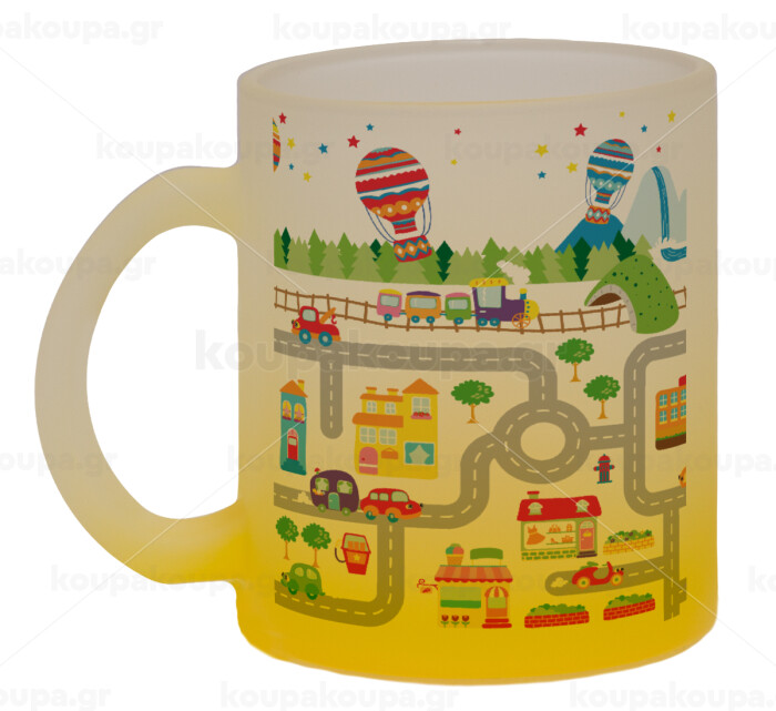 Toys Boy, Κούπα γυάλινη δίχρωμη με βάση το κίτρινο ματ, 330ml