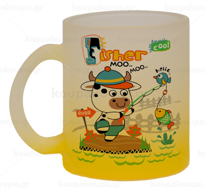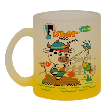 Kids Fisherman, Κούπα γυάλινη δίχρωμη με βάση το κίτρινο ματ, 330ml