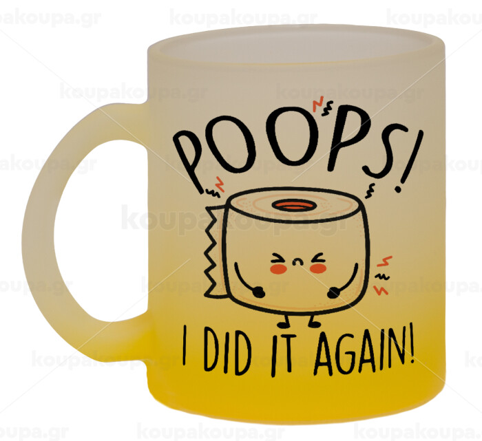 Poops!...I Did It Again, Κούπα γυάλινη δίχρωμη με βάση το κίτρινο ματ, 330ml