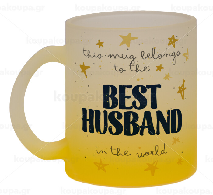 This mug belongs to the BEST HUSBAND in the world!, Κούπα γυάλινη δίχρωμη με βάση το κίτρινο ματ, 330ml
