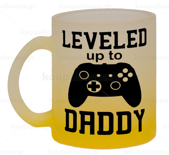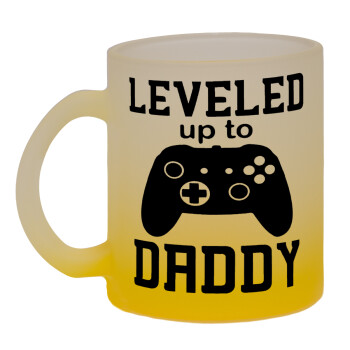 Leveled to Daddy, Κούπα γυάλινη δίχρωμη με βάση το κίτρινο ματ, 330ml
