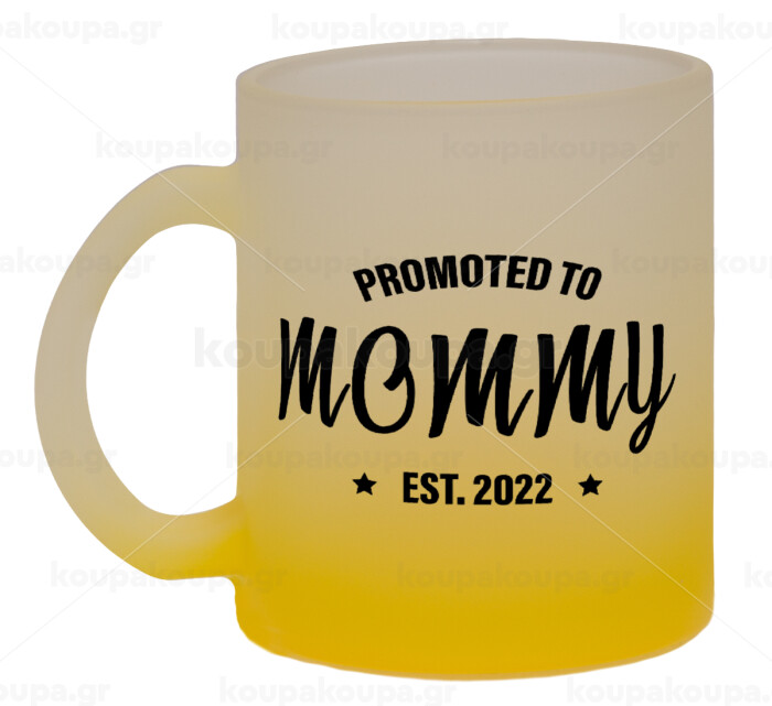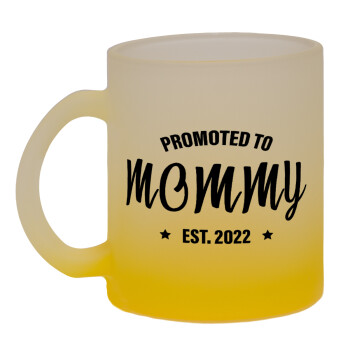 Promoted to Mommy, Κούπα γυάλινη δίχρωμη με βάση το κίτρινο ματ, 330ml