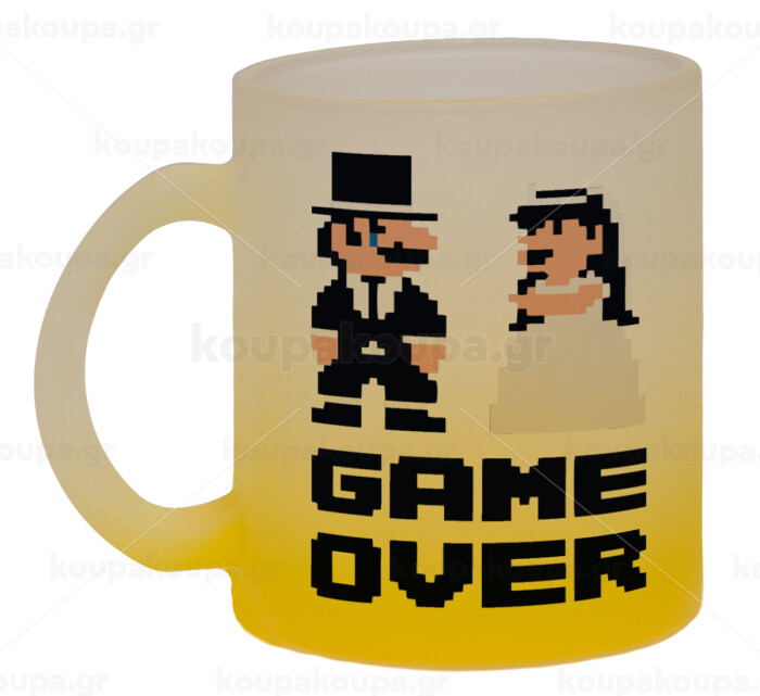 8bit Game Over Couple Wedding, Κούπα γυάλινη δίχρωμη με βάση το κίτρινο ματ, 330ml