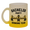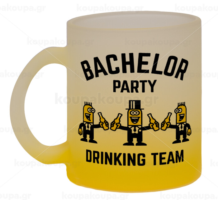 Bachelor Party Drinking Team, Κούπα γυάλινη δίχρωμη με βάση το κίτρινο ματ, 330ml