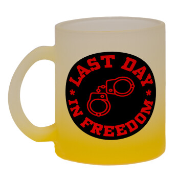 Last day in freedom, Κούπα γυάλινη δίχρωμη με βάση το κίτρινο ματ, 330ml