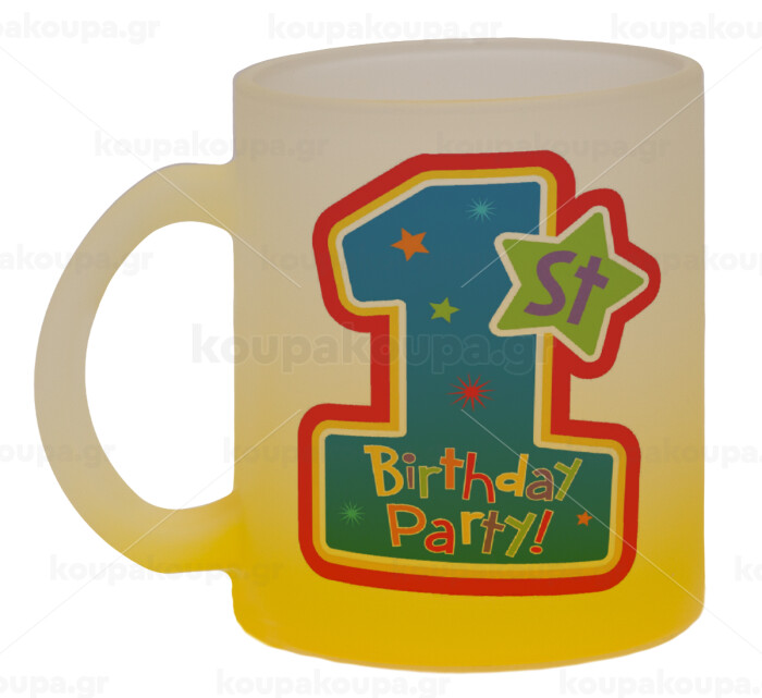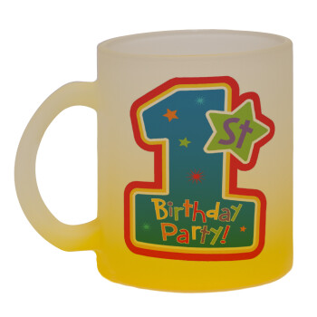 Happy 1st Birthday, Κούπα γυάλινη δίχρωμη με βάση το κίτρινο ματ, 330ml