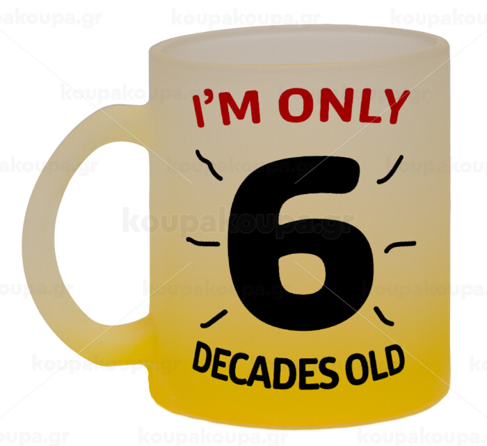 I'm only NUMBER decades OLD, Κούπα γυάλινη δίχρωμη με βάση το κίτρινο ματ, 330ml