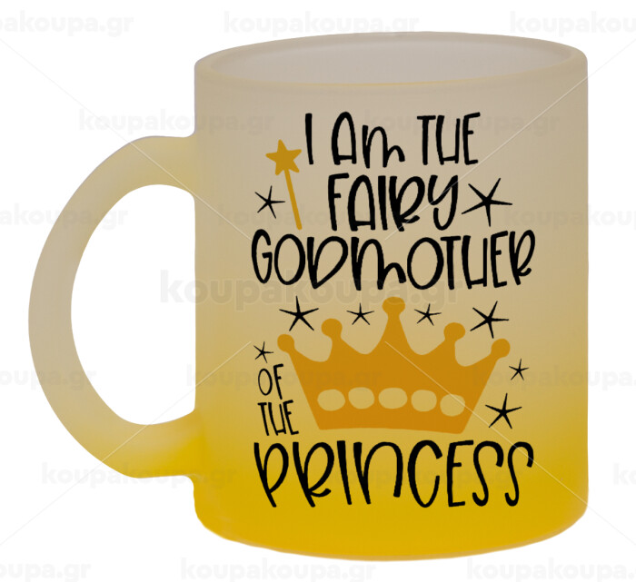 I am the fairy Godmother of the Princess, Κούπα γυάλινη δίχρωμη με βάση το κίτρινο ματ, 330ml