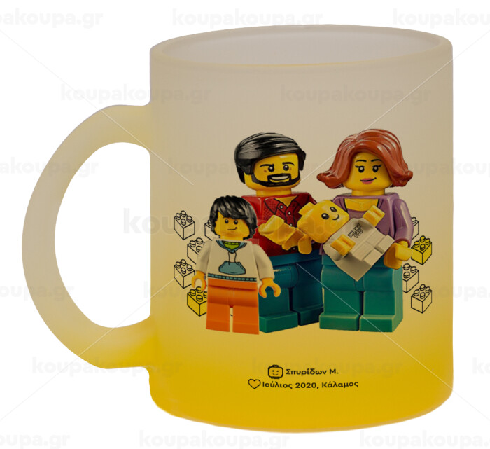 Τύπου Lego family, Κούπα γυάλινη δίχρωμη με βάση το κίτρινο ματ, 330ml