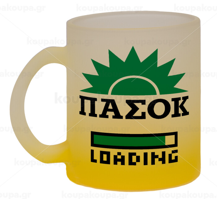 PASOK Loading, Κούπα γυάλινη δίχρωμη με βάση το κίτρινο ματ, 330ml