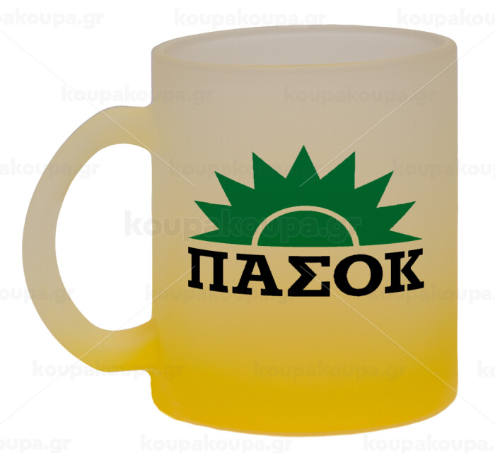 PASOK the orthodoxo, Κούπα γυάλινη δίχρωμη με βάση το κίτρινο ματ, 330ml