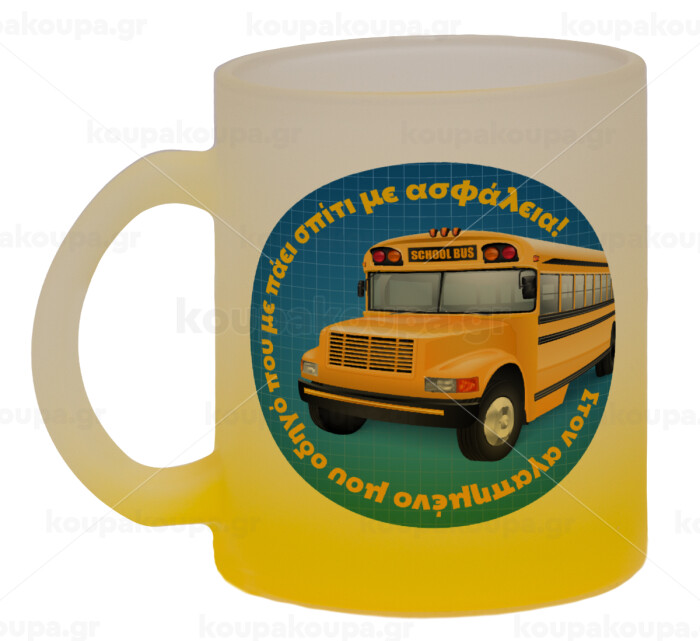 Στον αγαπημένο μου οδηγό σχολικού!, Κούπα γυάλινη δίχρωμη με βάση το κίτρινο ματ, 330ml