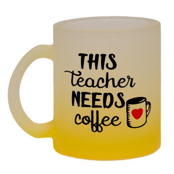 Τhis teacher needs coffee, Κούπα γυάλινη δίχρωμη με βάση το κίτρινο ματ, 330ml