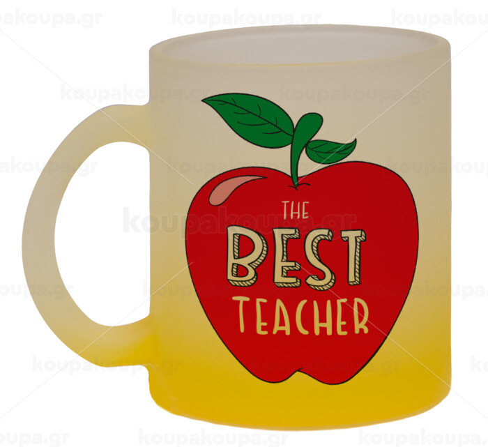 Best teacher, Κούπα γυάλινη δίχρωμη με βάση το κίτρινο ματ, 330ml