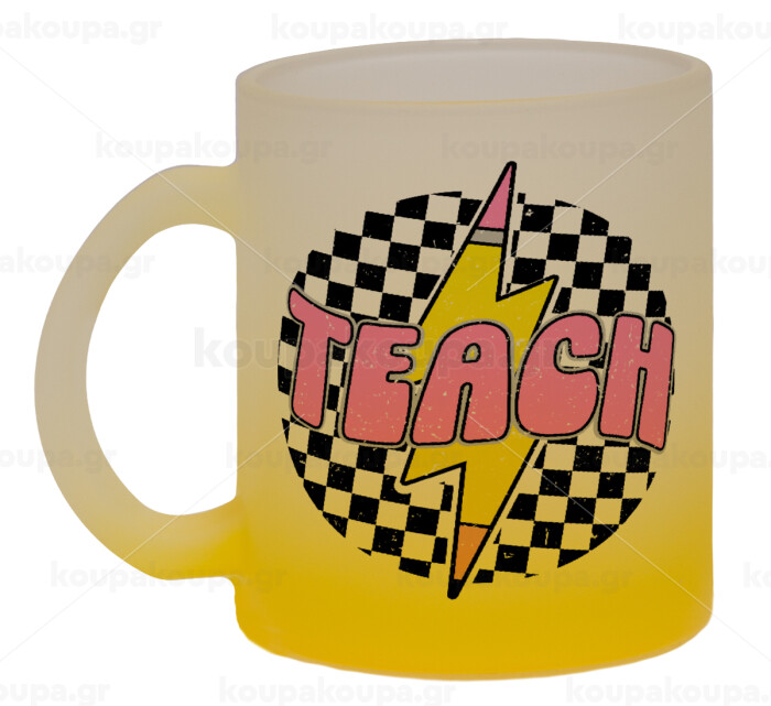 Teacher, Κούπα γυάλινη δίχρωμη με βάση το κίτρινο ματ, 330ml