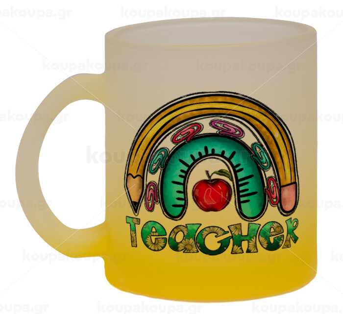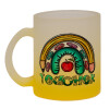Teacher, Κούπα γυάλινη δίχρωμη με βάση το κίτρινο ματ, 330ml