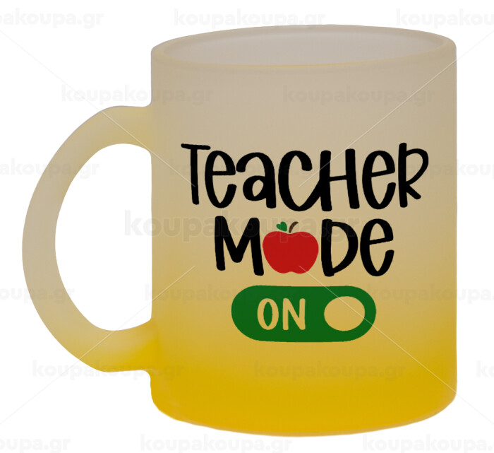 Teacher mode ON, Κούπα γυάλινη δίχρωμη με βάση το κίτρινο ματ, 330ml