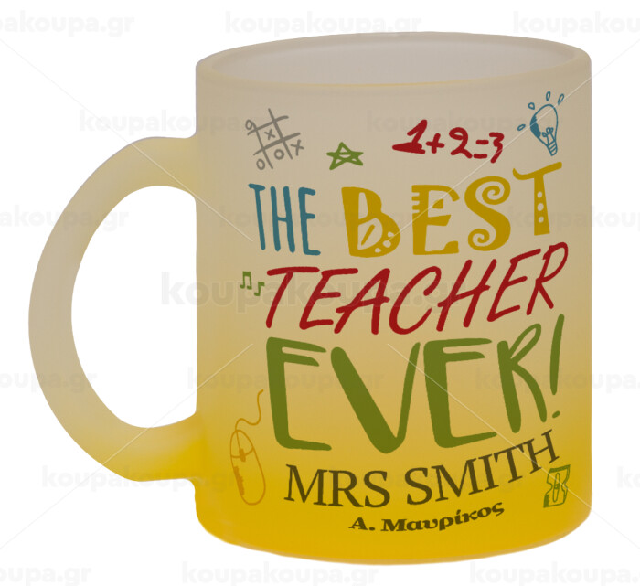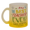 The best teacher ever!, Κούπα γυάλινη δίχρωμη με βάση το κίτρινο ματ, 330ml
