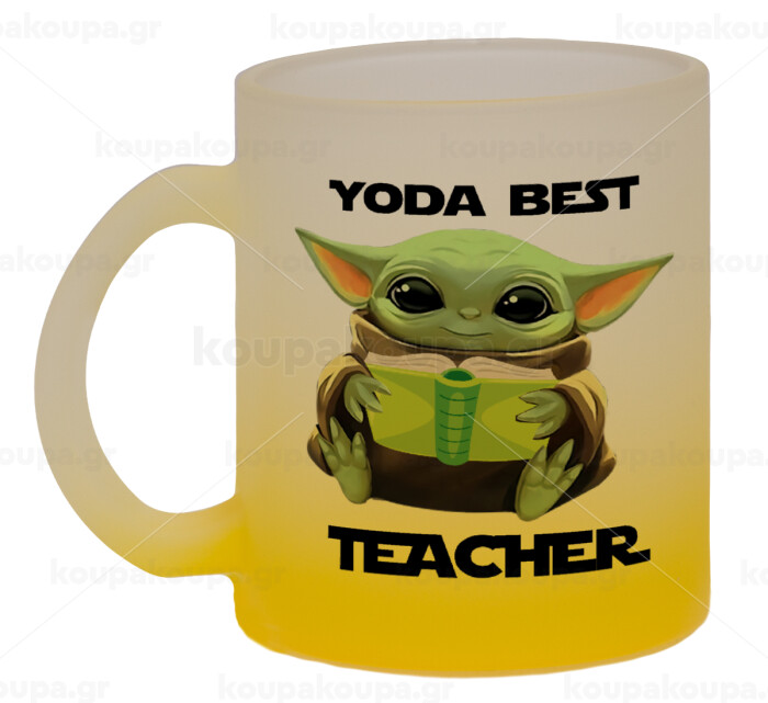 Yoda Best Teacher, Κούπα γυάλινη δίχρωμη με βάση το κίτρινο ματ, 330ml