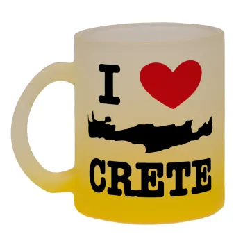 I Love Crete, Κούπα γυάλινη δίχρωμη με βάση το κίτρινο ματ, 330ml