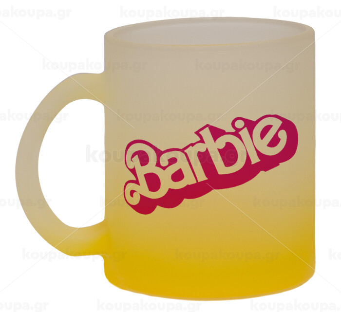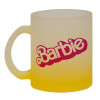 Barbie repeat, Κούπα γυάλινη δίχρωμη με βάση το κίτρινο ματ, 330ml