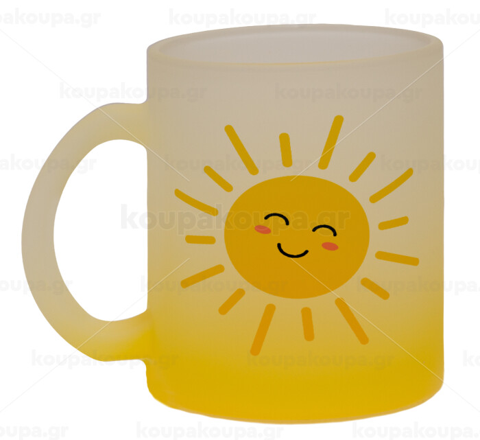 Happy sun, Κούπα γυάλινη δίχρωμη με βάση το κίτρινο ματ, 330ml