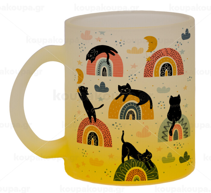 Γατούλες, Κούπα γυάλινη δίχρωμη με βάση το κίτρινο ματ, 330ml