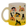 Cat cracked, Κούπα γυάλινη δίχρωμη με βάση το κίτρινο ματ, 330ml