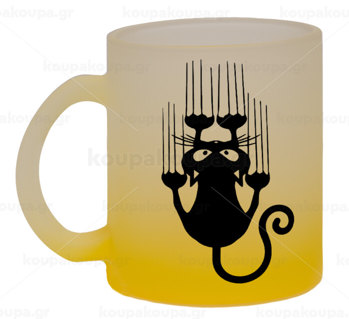 Cat scratching, Κούπα γυάλινη δίχρωμη με βάση το κίτρινο ματ, 330ml