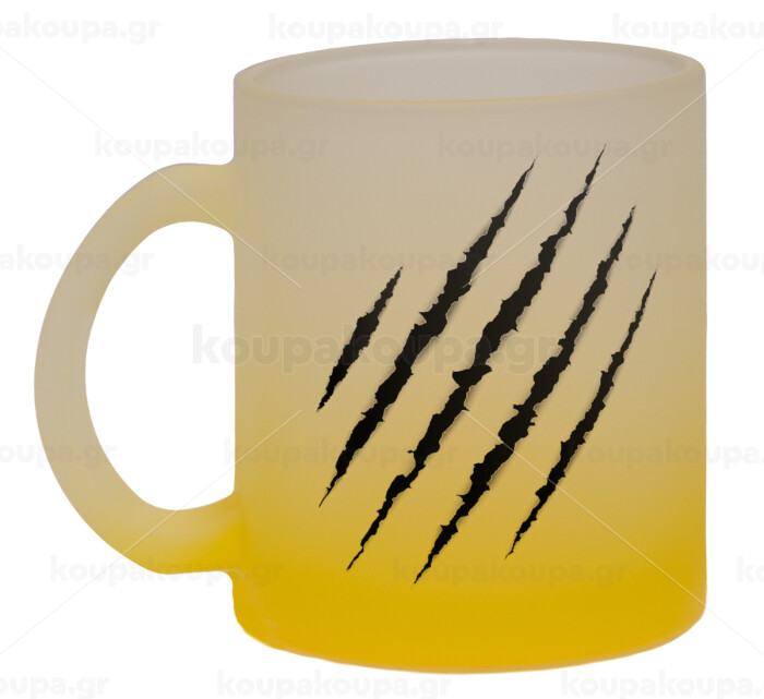Claw scratch, Κούπα γυάλινη δίχρωμη με βάση το κίτρινο ματ, 330ml
